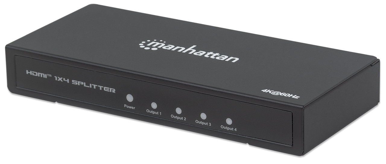 The Manhattan 4K 4-Port HDMI Splitter with built-in booster streams a 4K HDMI signal from a single UHD source to up to four UHD displays.